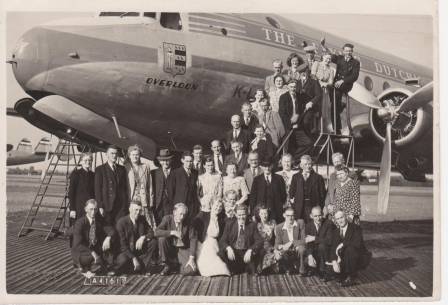 Op de foto van vandaag uit 1953 zien we leden van de Hollandsche Maatschappij van Landbouw, waarvan veel Papendrechtse boeren lid waren. De boeren gingen trouwens geen vliegreis maken. Het vliegtuig ‘The flying Dutchman’ was alleen bedoeld als achtergrond voor de foto.
