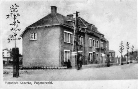 Foto: Op deze ansichtkaart van net na 1920 is de Veerdam te zien met jonge bomen, die nog moeten worden ondersteund. De uitgever van de ansichtkaart had duidelijk moeite met de moeilijke naam van het gebouw.