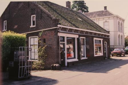 Foto: Het beeldbepalende complex Bosch 93/95/97 met links de zuivelhandel van N.C. (Nico) van Wijngaarden en rechts de kapperszaak, waarin het langst G.(Gerrit) Markesteijn was gevestigd. In de winkelruit worden de markiezen van het tegenoverliggende pand van Foto Schievink weerspiegeld