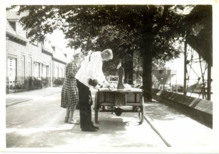 Foto: De heer G.C.(Gerard) Viveen (1905-1974) had een viswinkel aan het Oude Veer; hij was daarnaast een graag geziene verschijning met zijn viskar, zoals op deze foto van na de oorlog in de Merwedesingel met mevrouw Van den Adel.