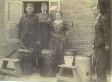 Op de foto een van de uitdeelposten van de Centrale Keuken. De gamellen met soep werden door Bode Piet Besemer (van ’t Zand) met paard en wagen naar de diverse uitdeelposten gebracht.