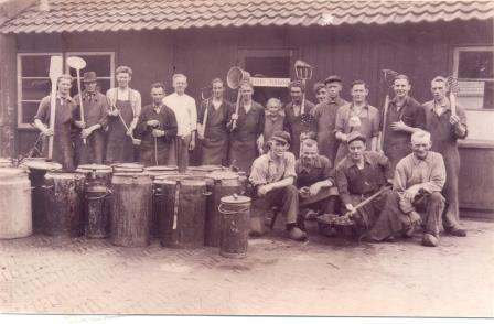 Foto: Medewerkers van de Centrale Keuken. Staand v.l.n.r.: R.Triet, A.Hardam, W.Dekker, W.van Hemert, D.Broekema, W.van Wijngaarden, M.Baldé, Mevr.Boer, G.Kolsloot, onbekend, C.Boer, H.v.d.Heiden, J.Romijn, A.van Dalen. Gehurkt v.l.n.r. G.v.d.Ruit, B.van Dalen, P.Hofwegen, P.Boer.
