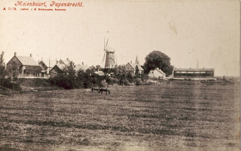 De buitenpolder waarop later ’t Zand is gebouwd deed voor die tijd dienst als weiland. Deze ansicht moet van voor 1918 zijn, want in dat jaar werd de Korenmolen De Hoop gesloopt. Meer hierover en nog veel meer oude én nieuwere plaatjes zullen te zien zijn tijdens de donateursavond.