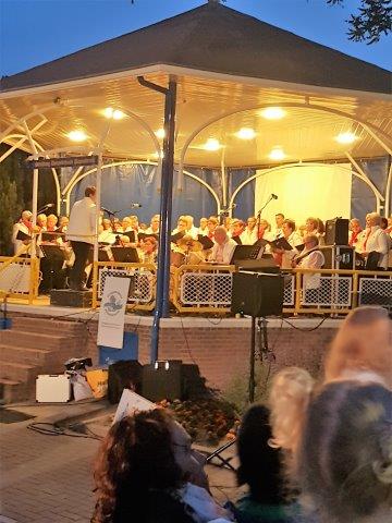 Om half acht werd het concert geopend door De Smarties, o.l.v. de nieuwe dirigente Jolanda den Houter. Met verve dirigeerde zij niet alleen het koor en de muzikanten, maar ook het publiek. De 12-jarige Yannick beleefde zijn debuut in de muziektent als invaldrummer. Met uiteraard veel bekende meezingers kwam de stemming er goed in. Het slotnummer ‘Adio, adio’ van Corry Konings werd met witte zakdoekjes ondersteund, maar het was een tijdelijk afscheid.