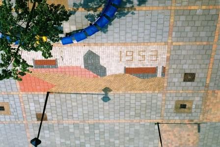 foto onder:Voormalige plaats van het mozaïek aan het Achterom naast het gemeentehuis.